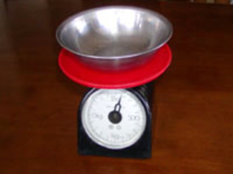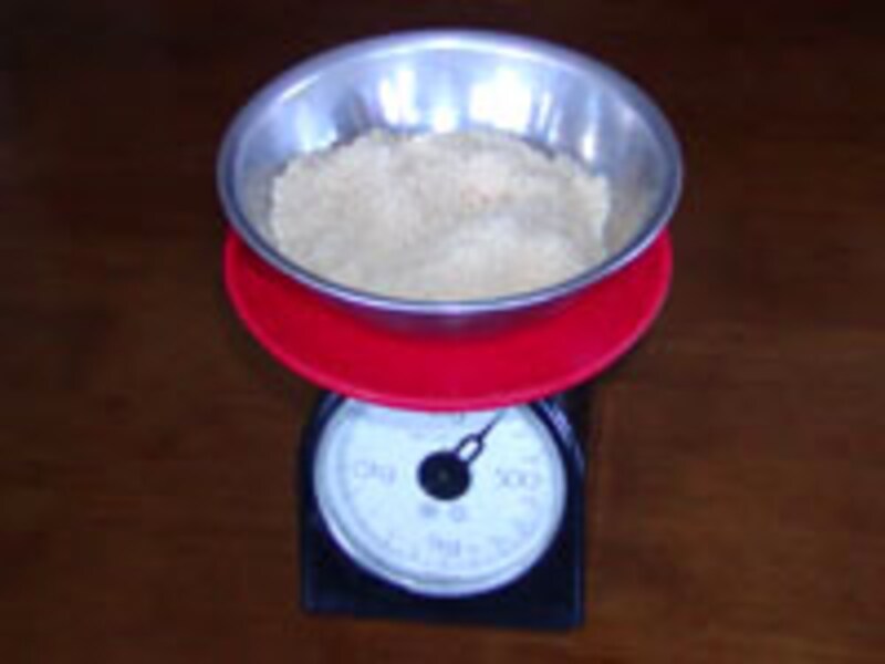 まず、容器の重さを量り、容器の重さ+150gが何グラムになるのか、考えて量りましょう。