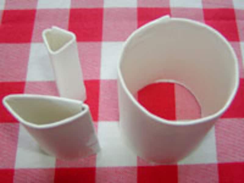 | 円柱形はジャック・オー・ランタンの顔、三角柱は目、円柱形の一部を切り取ったものは口の型抜きです。 |