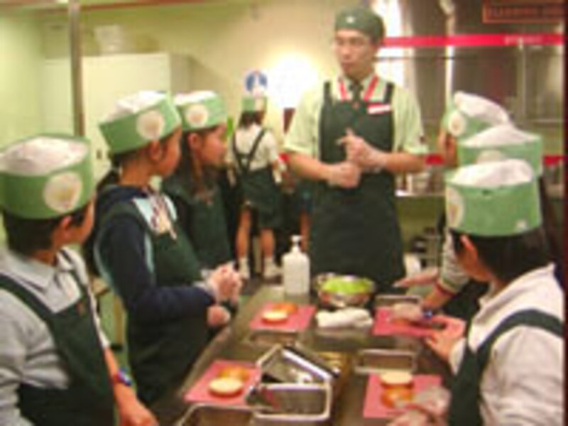 また、例えば、ハンバーガーショップでは、氷水につけたレタスとつけていないレタスを食べて、味を比較してみるなど、楽しみながら多くのことを学んでいきます。」