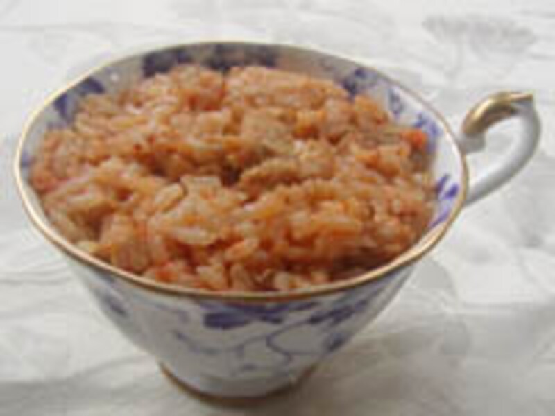 お子様ランチのピラフは、ティーカップで型をつけると、ちょうどいい。