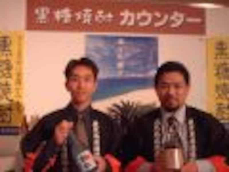 我らが親分田崎真也氏とともに取材旅行で訪ねて以来、思いっきりはまってしまった『黒糖焼酎』。これまた我が店に常備なのだが、ブースに行くと、喜界島は『朝日』(朝日酒造株式会社)の喜禎(きてい)浩之氏と、徳之島は『天川酒造株式会社』の乾(いぬい)真一郎氏が、ロックを薦めてくれる。