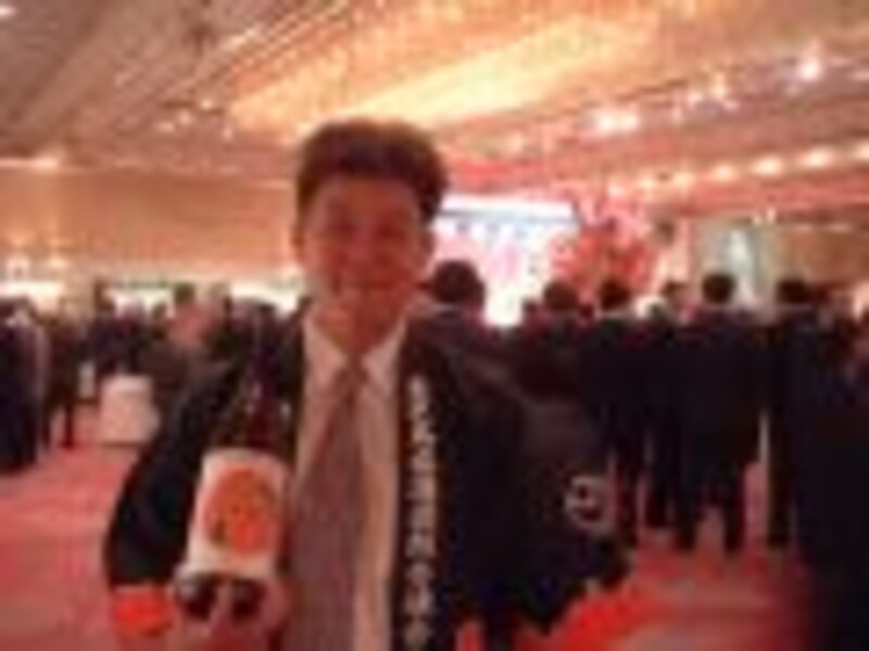 「福井ならではの“ふくいうらら酵母”は柔らかい味わいいがいいんです」とハッピ姿で福井のお酒をPRする加藤団秀(あつひで)十一代目当主。本日は福井のお酒の代表だから、あちこちの蔵元さんの商品紹介で忙しそう。(実はその夜、我がワインバーに来ていただいて、福井のお酒について、ワインを飲みながら(?)熱く語り合ったのだ。ソムリエ界でも『梵』は人気!)