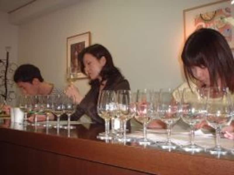 これすべて、ブラインドテイスティングするのだ。基礎を勉強し終えた生徒の皆さんは、慣れた雰囲気で、テイスティングにとりかかっていく。