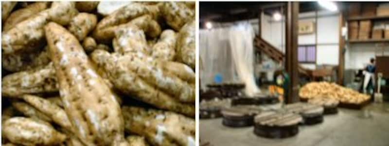 昔ながらの木造りの蔵で、ちょうど今の時期、収穫したてのさつまいも「黄金千貫(コガネセンガン)」の洗いのところからみることができる。