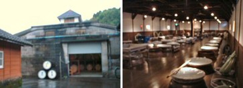 ![]() 石の蔵。雨に濡れて風情がある(=左)、津貫の蔵。とても清潔(=右) |