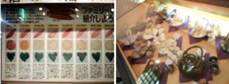 ![]() お芋の種類と葉っぱ(=左)、「じょか」でお燗にして飲むのが美味しい(=右) |