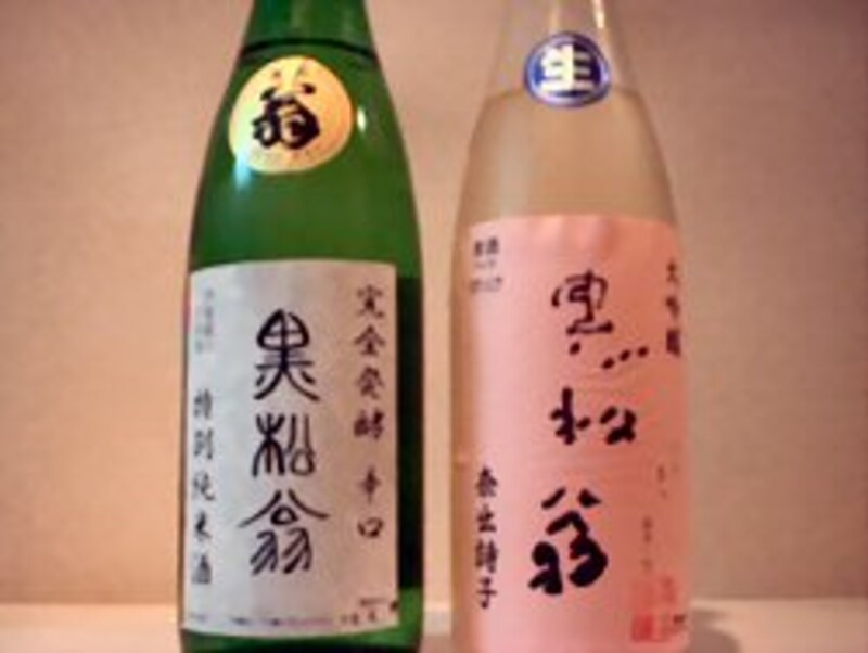 | 『大吟醸 黒松翁 奈出詩子』と『完全発酵辛口 黒松翁 特別純米酒』 |