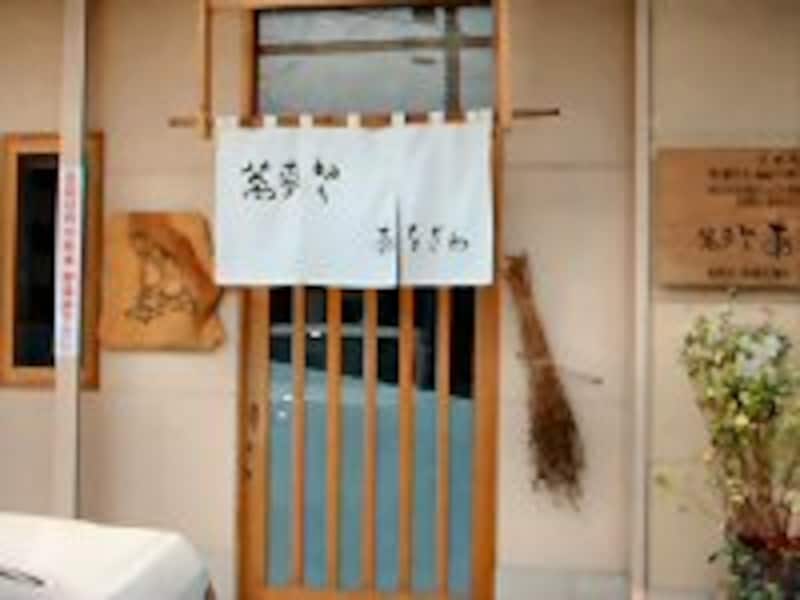 |  白い暖簾が目印。 清潔感のあるお店だ。 |