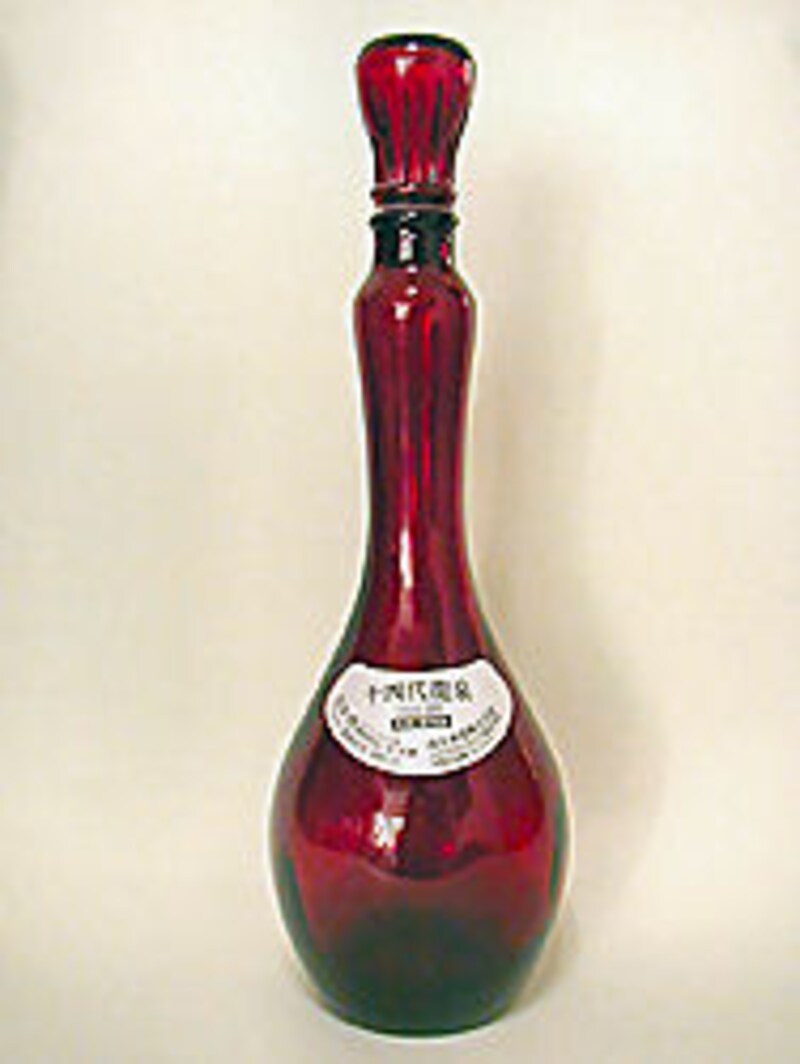 正倉院に飾られてもいいほどといっては大げさかもしれないが、その昔ペルシャからシルクロードを経て渡来したオリエンタルガラスの酒器のようではないか。古いけどモダン!なデザインと色あいに惹かれる。