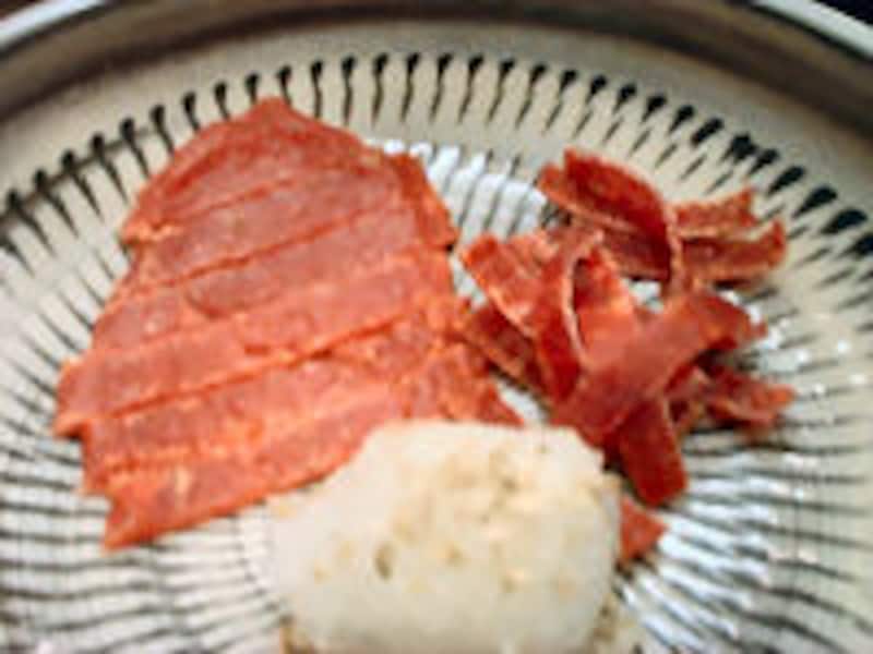 感動したのは「ドライ明太子」(650円)。文字通り干した明太子だけど凝縮した旨味と適度の塩味が、まあ、あとを引くあとを引く。