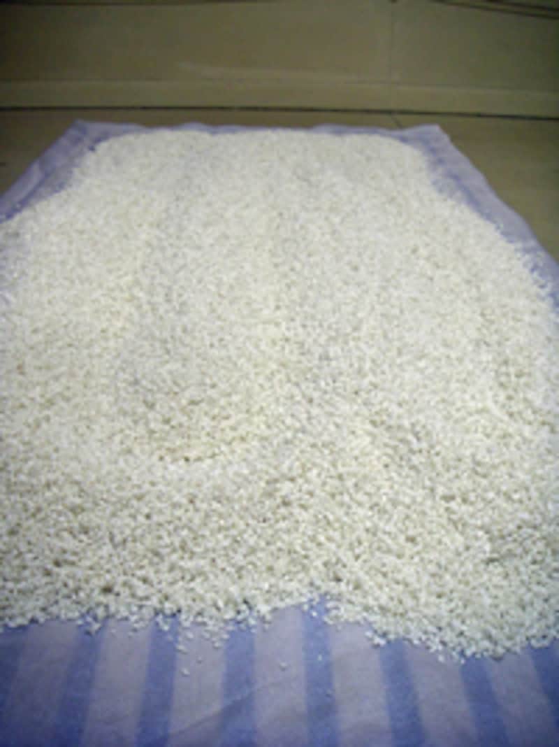 ![]() こちらは出来上がった麹米。噛んでみると栗のような歯ごたえと味わいで甘いのだ |