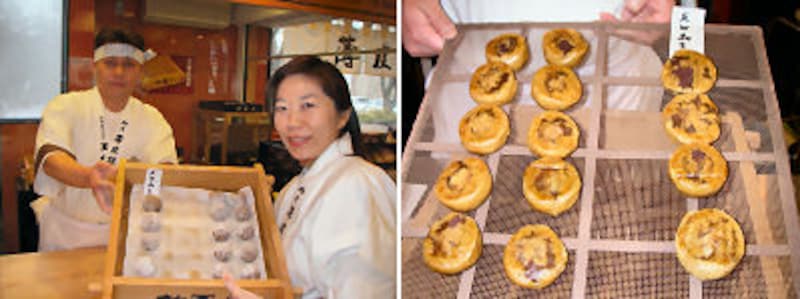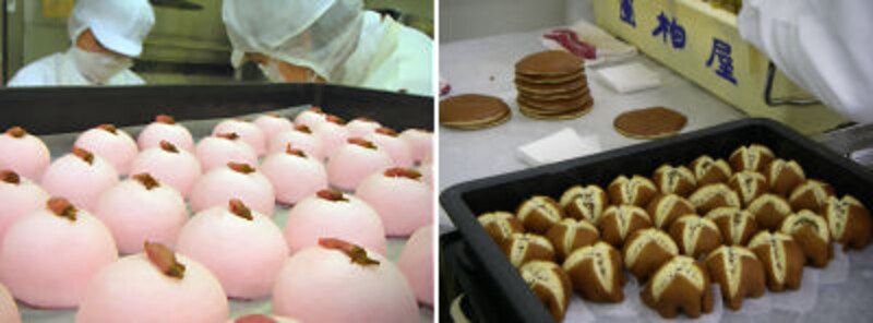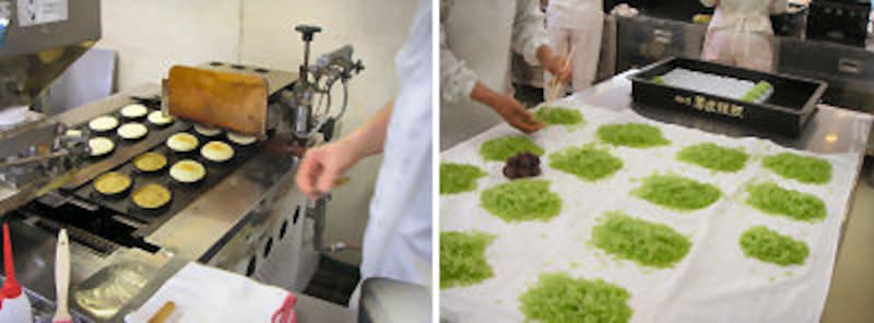 柏屋さんは創業嘉永5年(1852年)。154年を迎える老舗和菓子メーカーの工場は、意外なことに近代的で徹底した衛生管理のもと、ものすごい集中力で、きわめて丁寧に造られている。