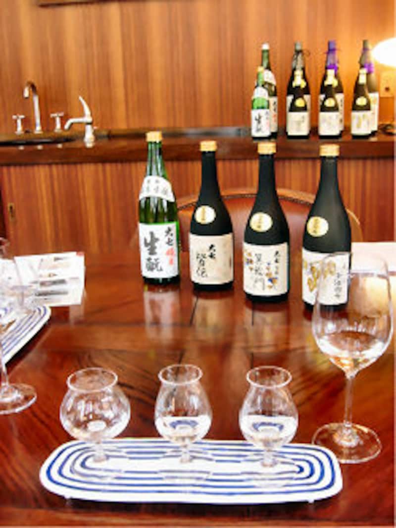 ![]() テイスティングルームにて利き酒させていただいたアイテムたち。 |