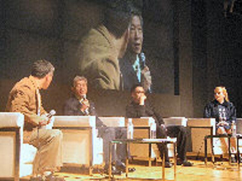 ![]() パネルディスカッション参加者(株)ウッドワーク/藤井製桶所代表取締役、上芝雄史氏の話は説得力があった。 |