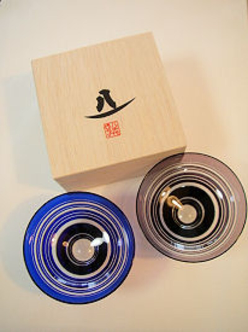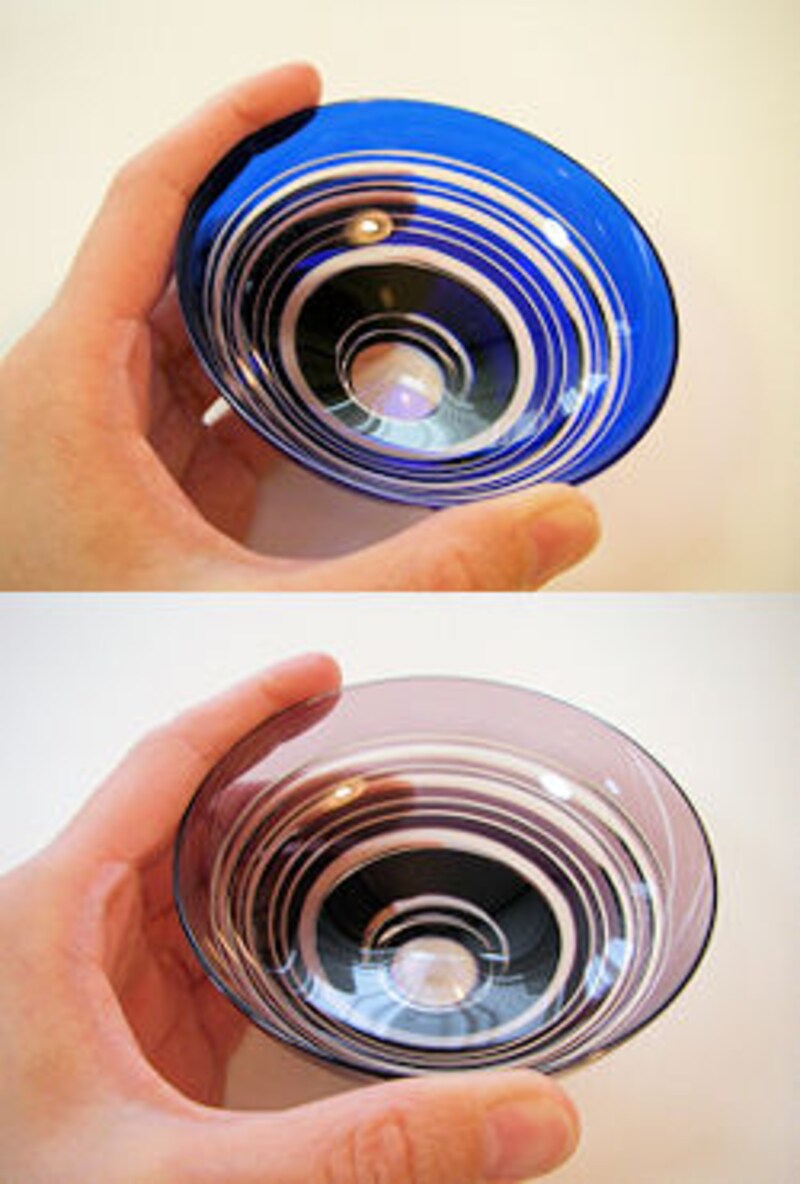 模様は「蛇の目」。お酒を注ぐと、きらきら光ってとても美しい。