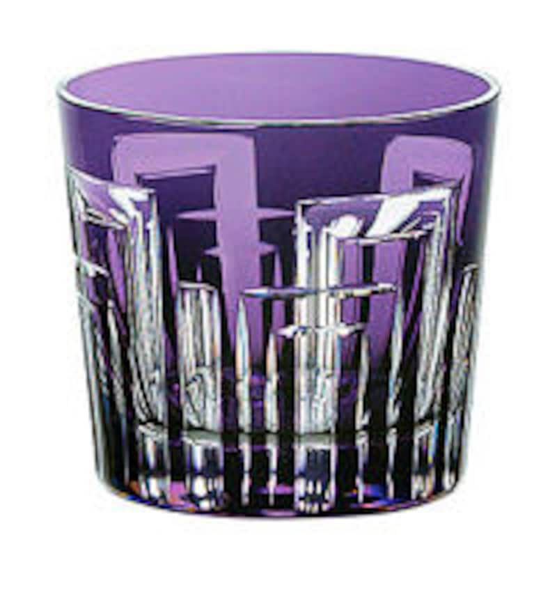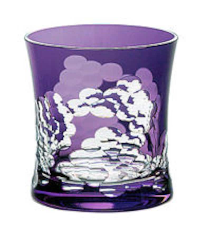 ◎江戸時代に能装束や絵画に好んで使われた文様を、瑠璃色のグラスに施したもの。このような曲面の大きなカットは、技術的に最も難しいといわれている。クリスタルが持つ「ねばり」のようなものさえ感じられる逸品。