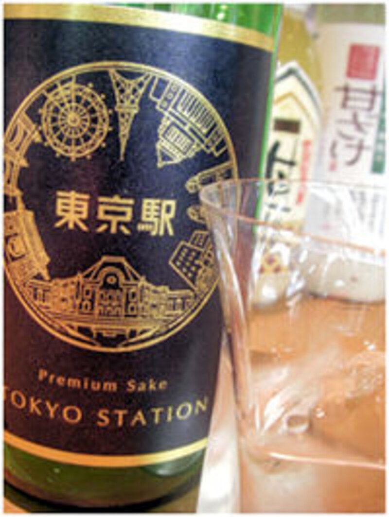 | 柔らかい泡が上品な辛口スパークリング。ほかにロゼのやや甘口もある。 | まさに東京駅ならではの日本酒。 オンザロックでもおいしい。 |