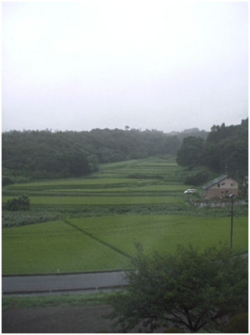 | 雨にけぶる田んぼ。だんだん田んぼが美しく本当にバローロのぶどう畑を思い出す。 |