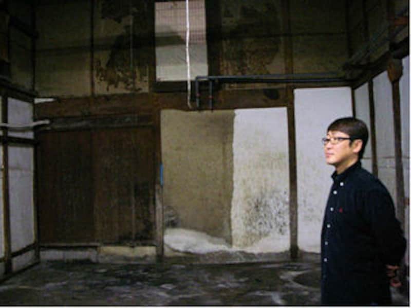 | 今は使っていない昔のもろみ室。驚くことに兼八の香ばしい香りが部屋中に染み付いていた。 |