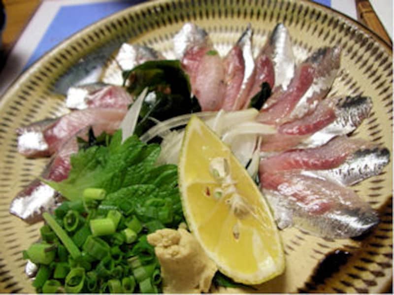 | お刺身も新鮮。キラキラ輝いて美しい。 |