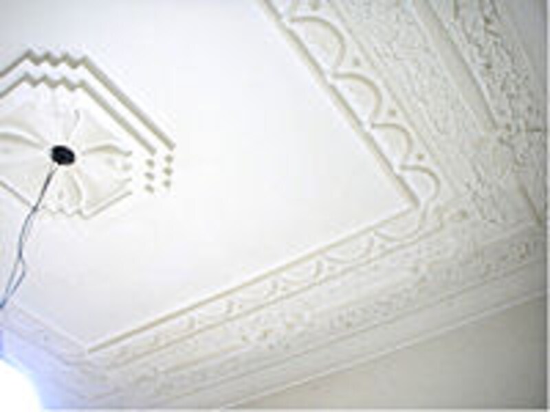| 歴史ある天井。美しいレリーフが今も残る蔵の中。 |