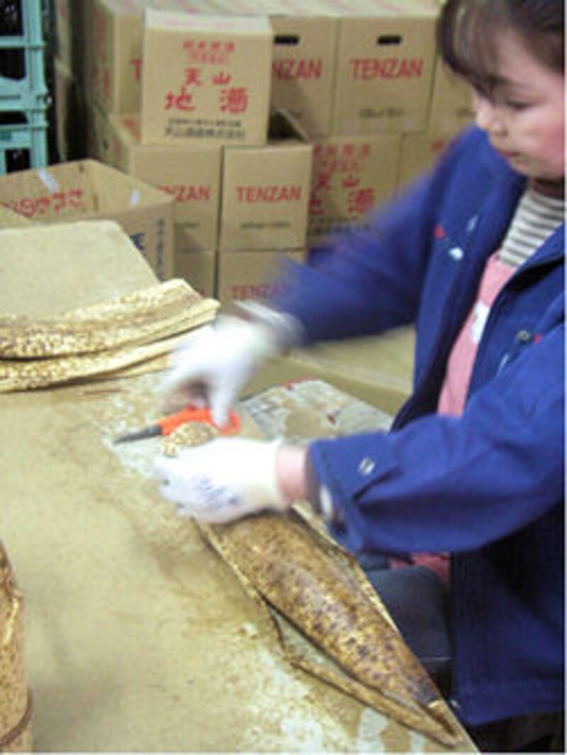 | ロングセラーの特別純米の竹包みは、1本1本手巻き! |