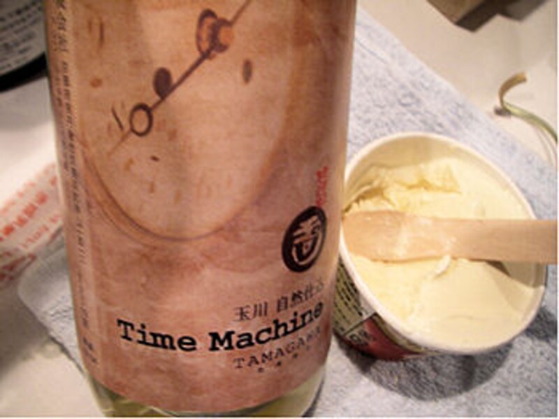 「自然仕込み Time Machine」(左)は、昔ながらの日本酒造りを再現したスペシャルなタイプ。甘さ控えめのソーテルヌのような、蜂蜜キャンディーや甘露飴のような風味。さまざまな飲み方ができそうだ。バニラアイスにとろりとかけていただく組み合わせは、当日のイベントで大人気であった。