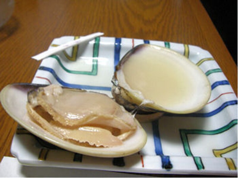 殻の内側に残る小さな貝柱もさくっとした歯ざわりで美味しい。これを取る方法は、貝柱がついている部分の外側を同じ貝で擦るやり方。こそげるときは同じ貝殻で外側からすっと滑らせるときれいに取れる。