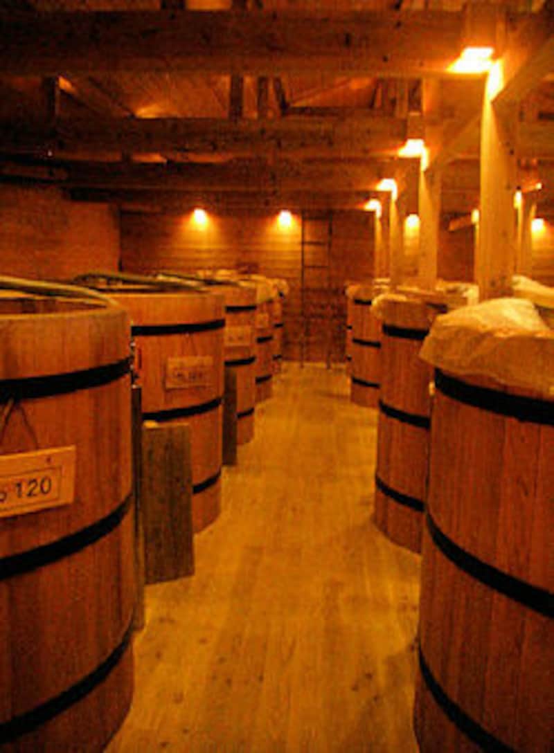 | 熟成庫。近くに流れる小川からはせせらぎの音が。 |
