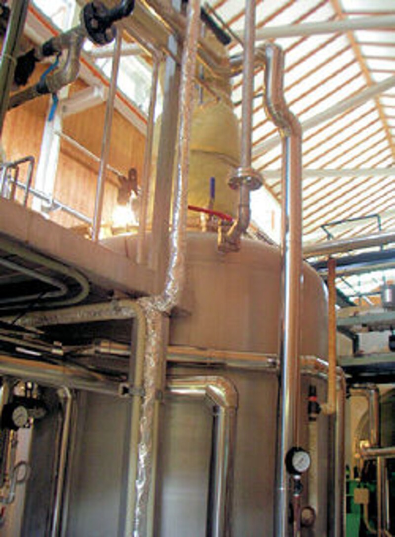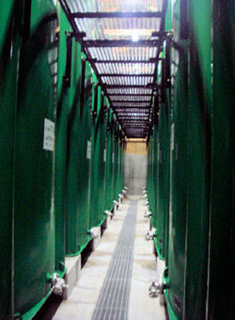 | 新しく清らかなタンクが並ぶ。酒造りは清潔さも要である。 |