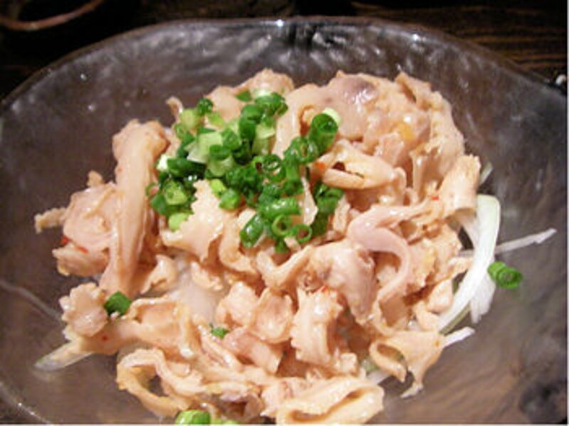 さらに、こりこりの歯ざわりの「酢モツ」は、コクのあるひやおろしとは絶妙な組み合わせ。焼酎のアテとしては有名だけど、日本酒も結構いけるから、お試しあれ。