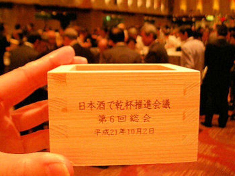 「酒と芸」をテーマにした対談で、俳優の小沢昭一氏の軽妙で洒脱なトークを楽しんだあと、明るい雰囲気のままパーティー会場へ。大勢の日本酒ファンが日本酒でカンパ~イ!をした。