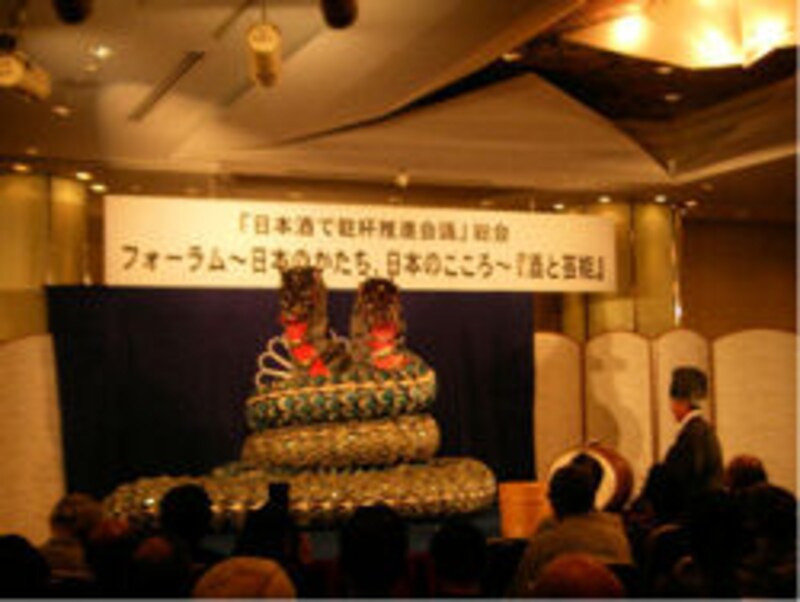 パーティー前に行われたのが、「~にほんのかたち、にほんのこころ~ 酒と芸能」と題されたフォーラムで「備中神楽」が上演された。