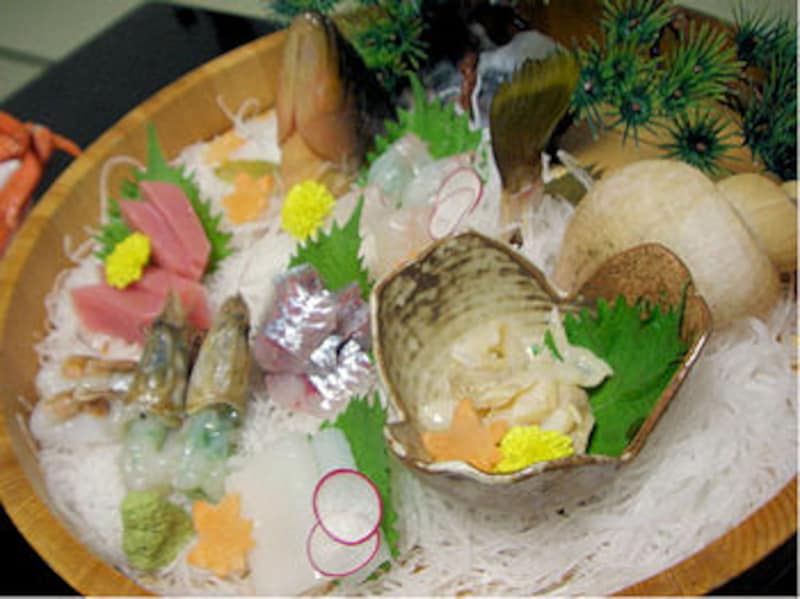 越前ガニ解禁の11月6日から、「越前ガニおまかせコース 21,000円~」がおすすめ。館内に生簀があるので、新鮮魚介が満載の料理だ。お風呂も温泉。きもちいい。(下の写真は、紅ズワイ。)