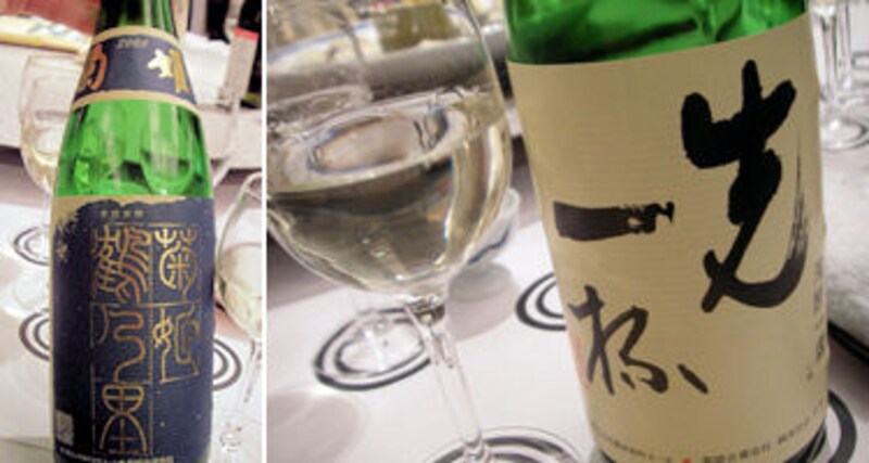 | 左から、昔飲んだイメージより幾分軽く感じる「菊姫」、コクのある同「先一杯(まずいっぱい)」 |