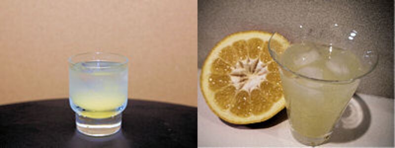 | 友田考案のそば焼酎カクテル“宮崎の太陽”。 ラムとグレープフルーツで作るスタンダードカクテル“ソル・クバーノ(キューバの太陽)”を元に考えたもの。レシピは、そば焼酎と宮崎の「日向夏」のジュースを半々にし、ソーダで割って出来上がり。ポイントは材料すべてをうんと冷やしておくこと。日向夏は甘すぎず適度な酸味と心地いい苦味があるので、ドライで飽きないフレッシュなカクテルに仕上がる。お試しあれ。 |