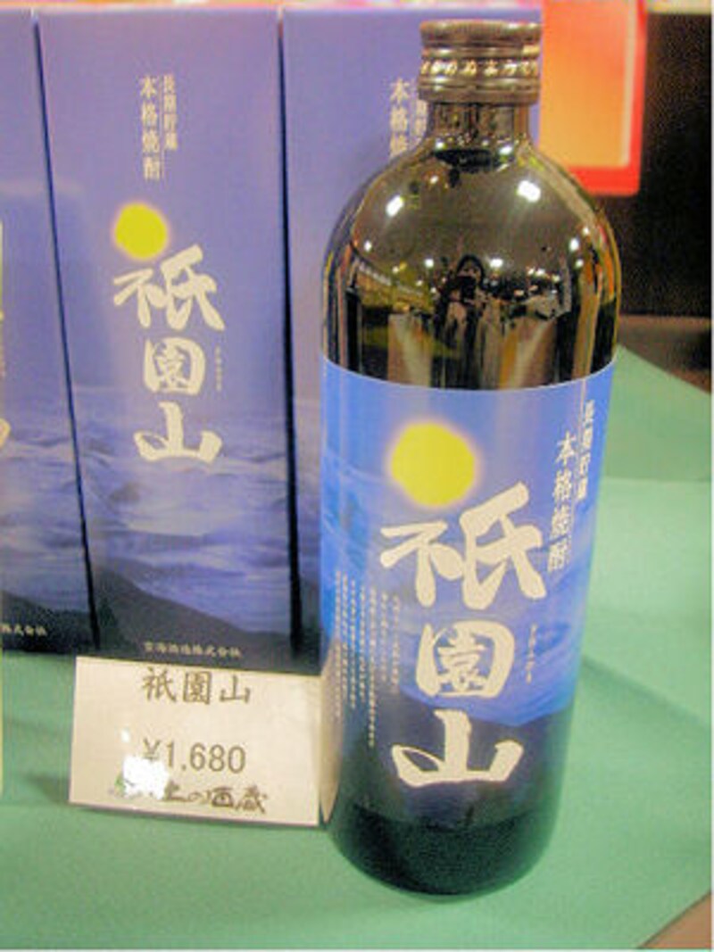 | 栗・粟・稗・米を使った20年熟成本格焼酎「祇園山」。ここでしか買えない限定品。720mlで1680円。 |