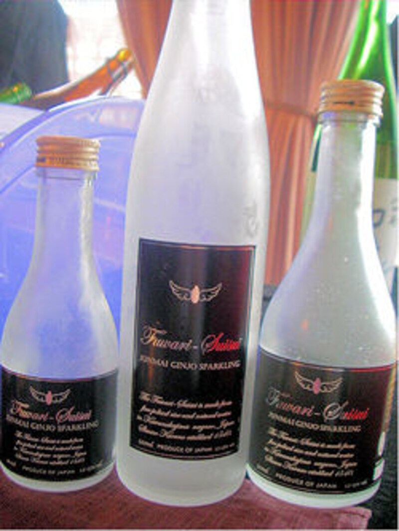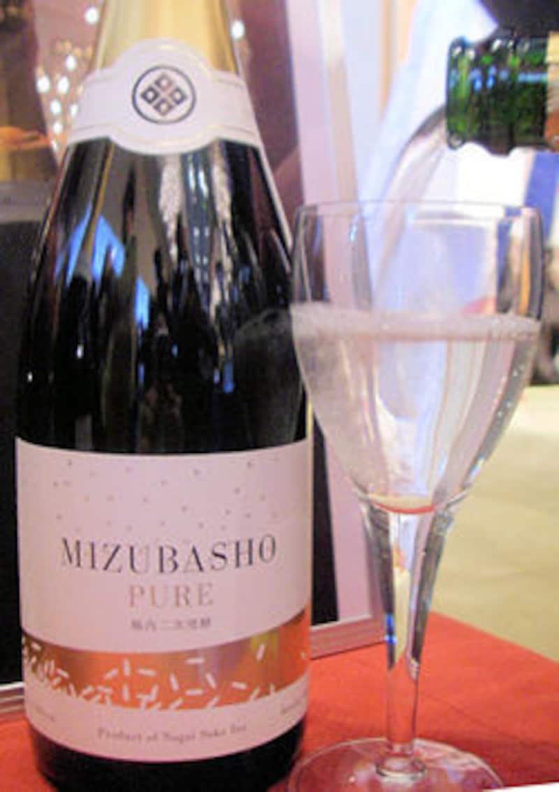 「永井酒造(株)」の発泡清酒『Mizubasho Pure 発泡 純米吟醸』(4,725円)。シャンパンをとことん研究して造られたビン内二次発酵。アルコールは13%。きりりと引き締まったシャープな味わいは、食前の一杯にぴったり。