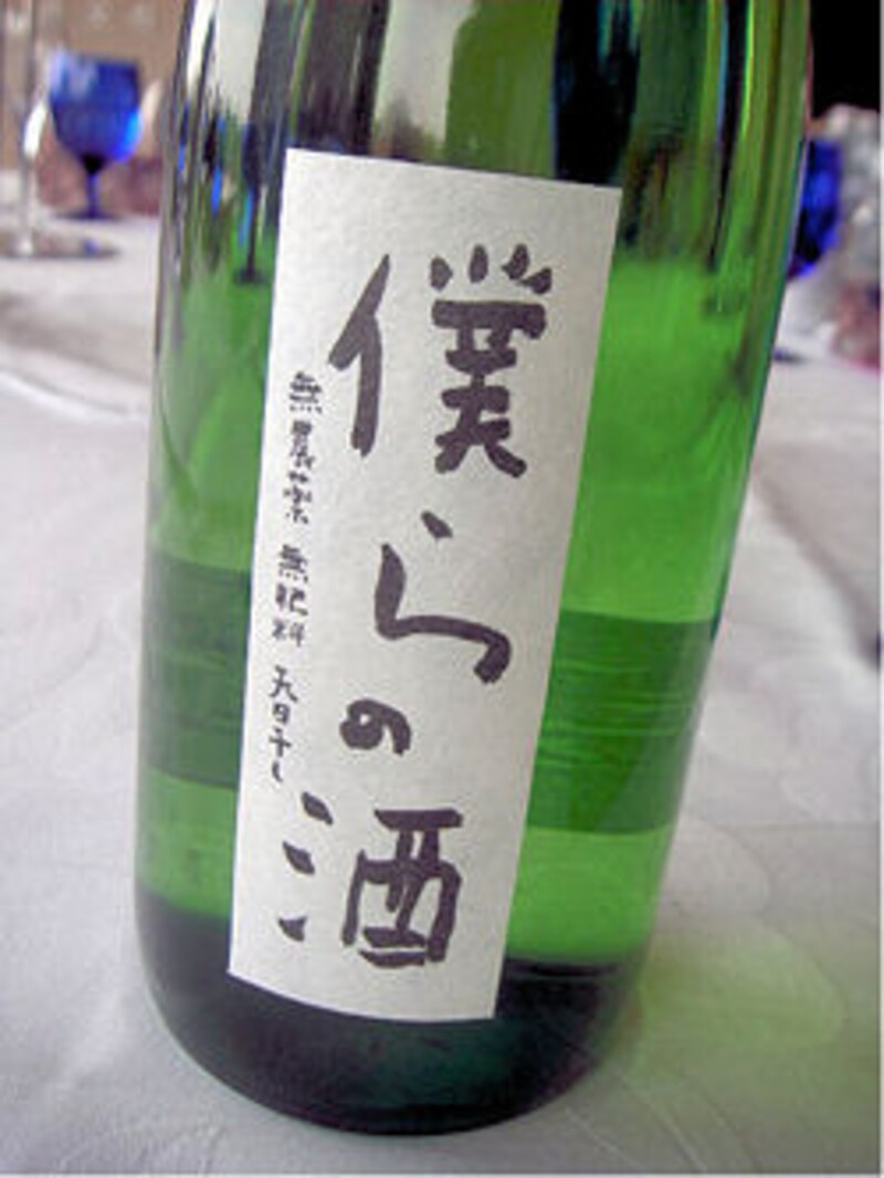 『僕らの酒』は、自然栽培米100%使用の美山錦を、なんと精米歩合90%で仕上げた純米酒。酒税法改定で精米歩合の数字関係なしで純米酒を名乗れるようになった。いろいろな味わいがたっぷり詰まった個性的な味。スパイシーさも感じられるような個性派で、楽しい飲み方提案が出来そう。720ml、1,500円(参考出品)。日本酒度+2、酸度2.5、アミノ酸2.0。