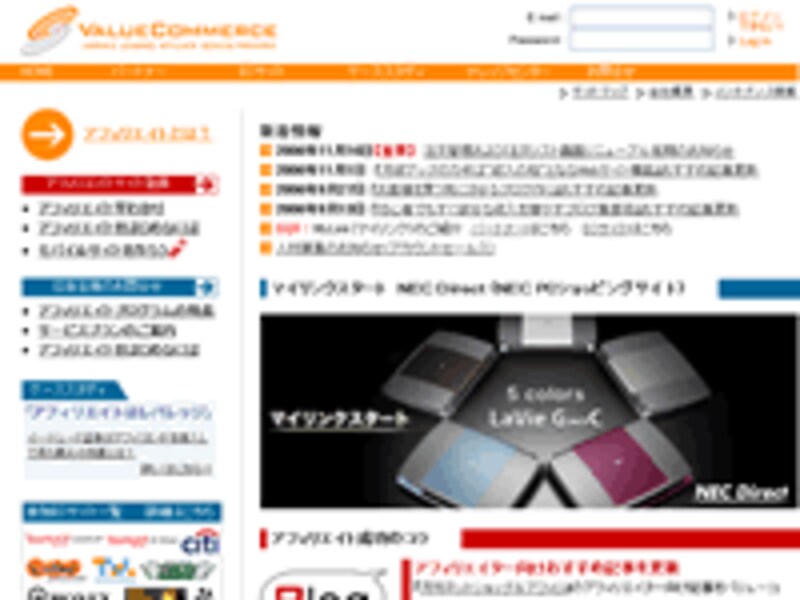 最大の特徴はその広告プログラム数の多さ。各ジャンルとも多数の広告を取り揃えており、ここに登録すれば大抵のジャンルの広告は見つけることが出来るでしょう。ぜひ登録しておきたい優良ASPの1つ。最低支払い報酬額は5000円。