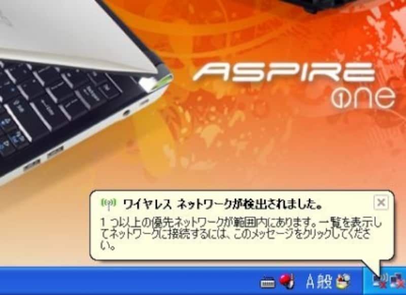 1. コンピュータを起動すると下図のように「~アクセスポイントが検索されました。」と表示されますので、メッセージをクリックします。