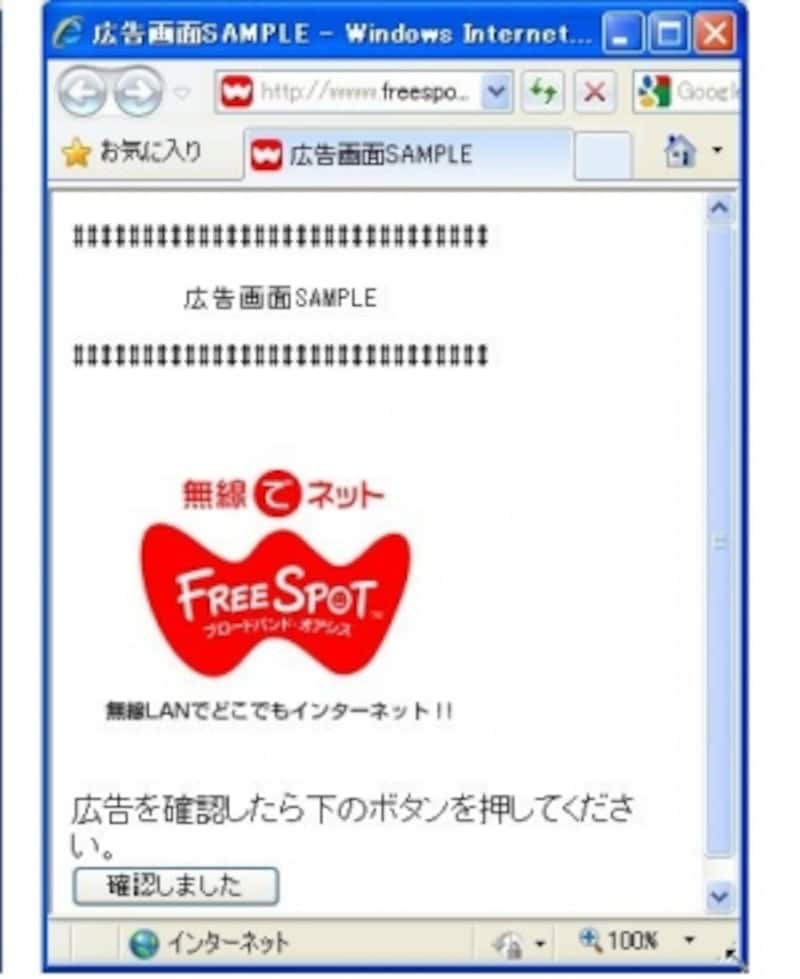 4. ブラウザを開くと以下のような広告が表示されます。「確認」ボタンを押してください。いつも見慣れているブラウザの初期画面が表示されます。