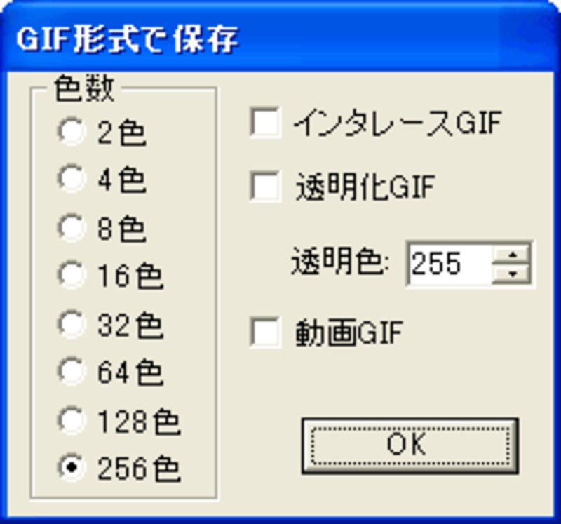 ※画像編集ソフトウェアを用いると、GIF/PNG形式で出力する際に、減色を行って色数を下げる機能があるものがあります。 これを使うとファイルサイズがもっと小さくなる可能性が高くなるわけですが、この処理を行うとオリジナルの画像データには戻せなくなります。(色数を減らしているわけですから。) ただ、これはあくまでも画像編集ソフトによる処理の問題であって、GIF/PNG形式という画像形式の問題ではありません。