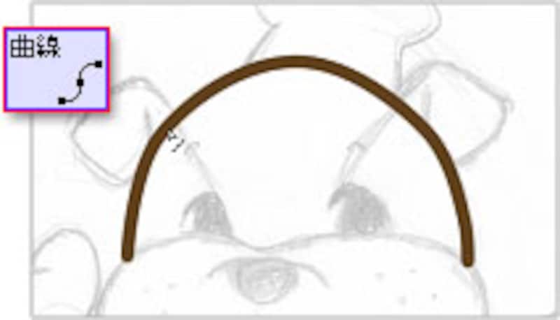 | 「ペン入れ」や「曲線」ツールなどでストロークを描きます。 |