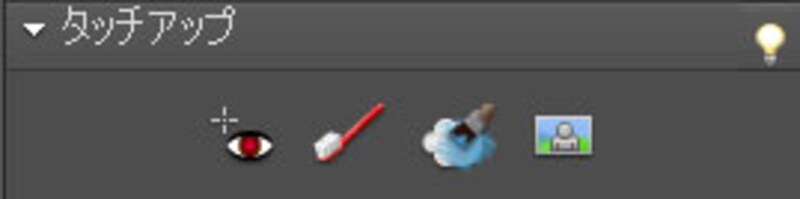 | 左から「赤目修正」「歯ブラシ」「青い空」「白黒」のツール。 |