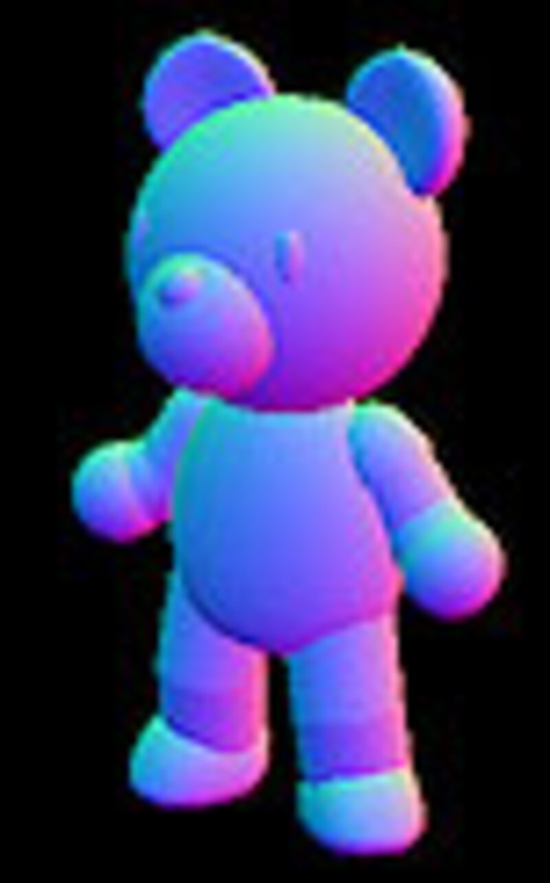 XY法線:カメラの向きを基準としたX, Y, Zの各軸の情報を色で表現した画像