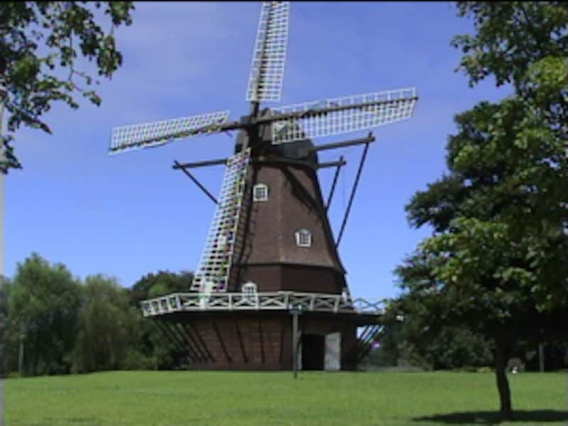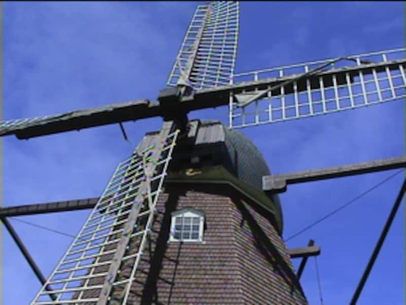 建物だけでなく、彫像や看板なども、見上げるようなアングルで撮ると、アイレベルで撮った映像とはひと味違った映像になります。