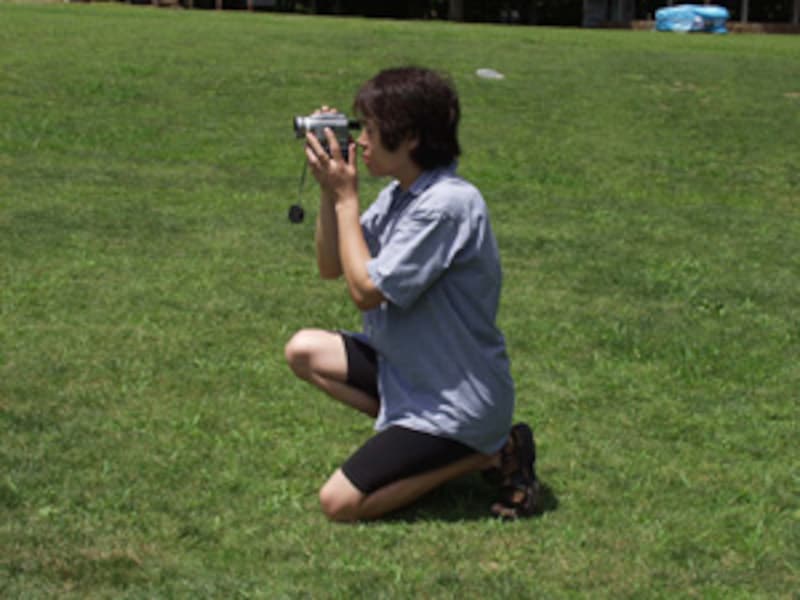 ビデオの撮影では、自分の目の高さで撮影するのが基本。これを「アイレベル」と呼んでいます。このほかにも状況に応じた撮影方法を利用しますが、カメラをどの位置で構えるかによって呼び方が変わります。