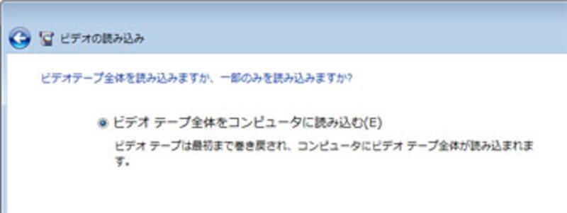 miniDVテープの全体を読み込むか、一部を読み込むかを選択します。ただし、HDV形式の場合は、テープ全体が読み込まれます。
