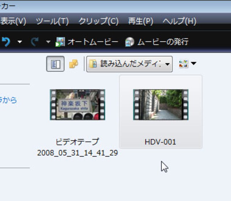 次に、ハードディスク上に保存されている映像データを読み込んでみましょう。